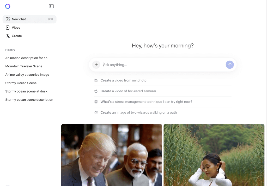 - Generate, then remix color, speed, and style. Share to Vibes with the prompt included.